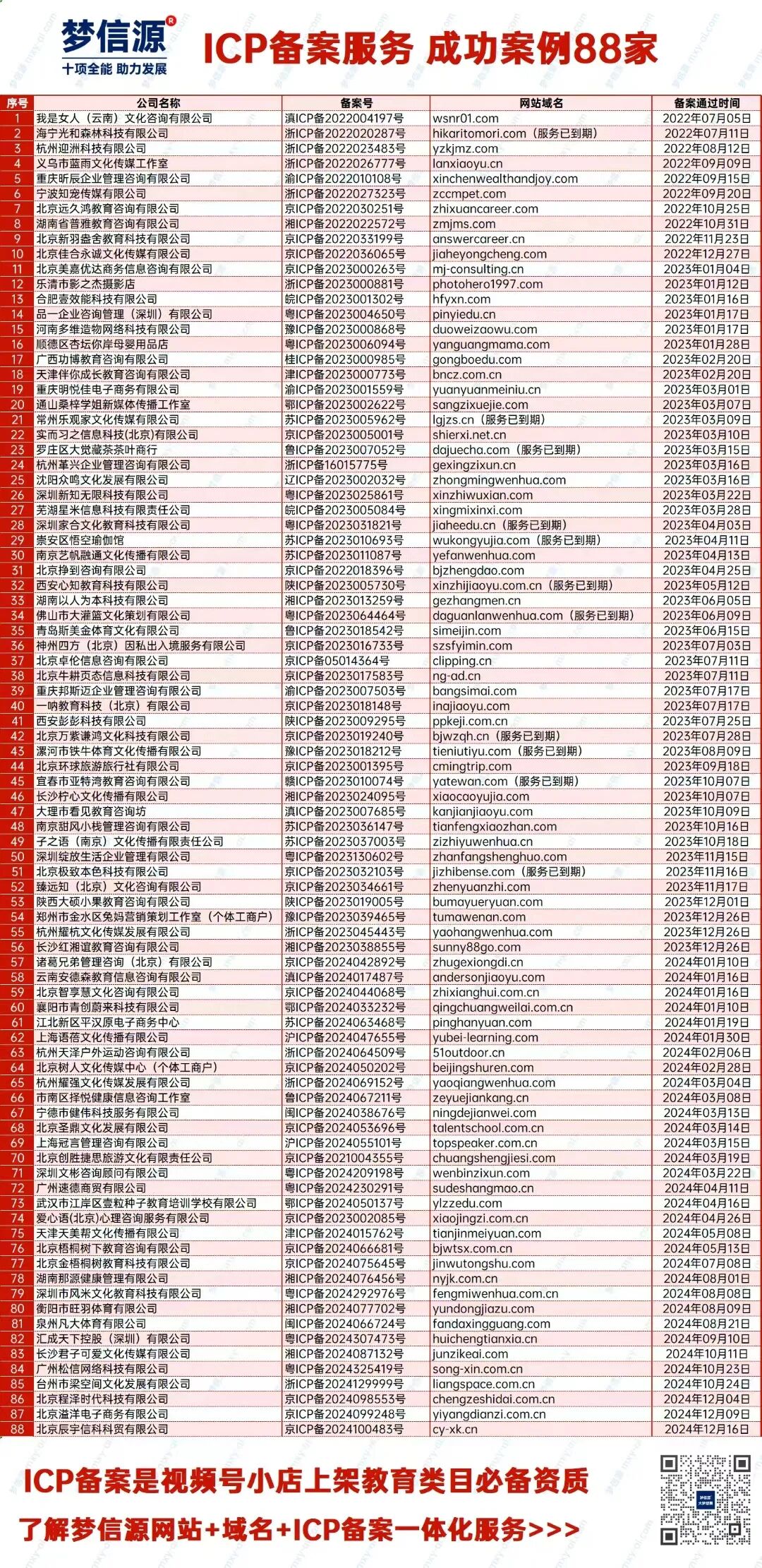 我們累計為88家企業(yè)提供了ICP備案、小程序搭建和商標注冊服務