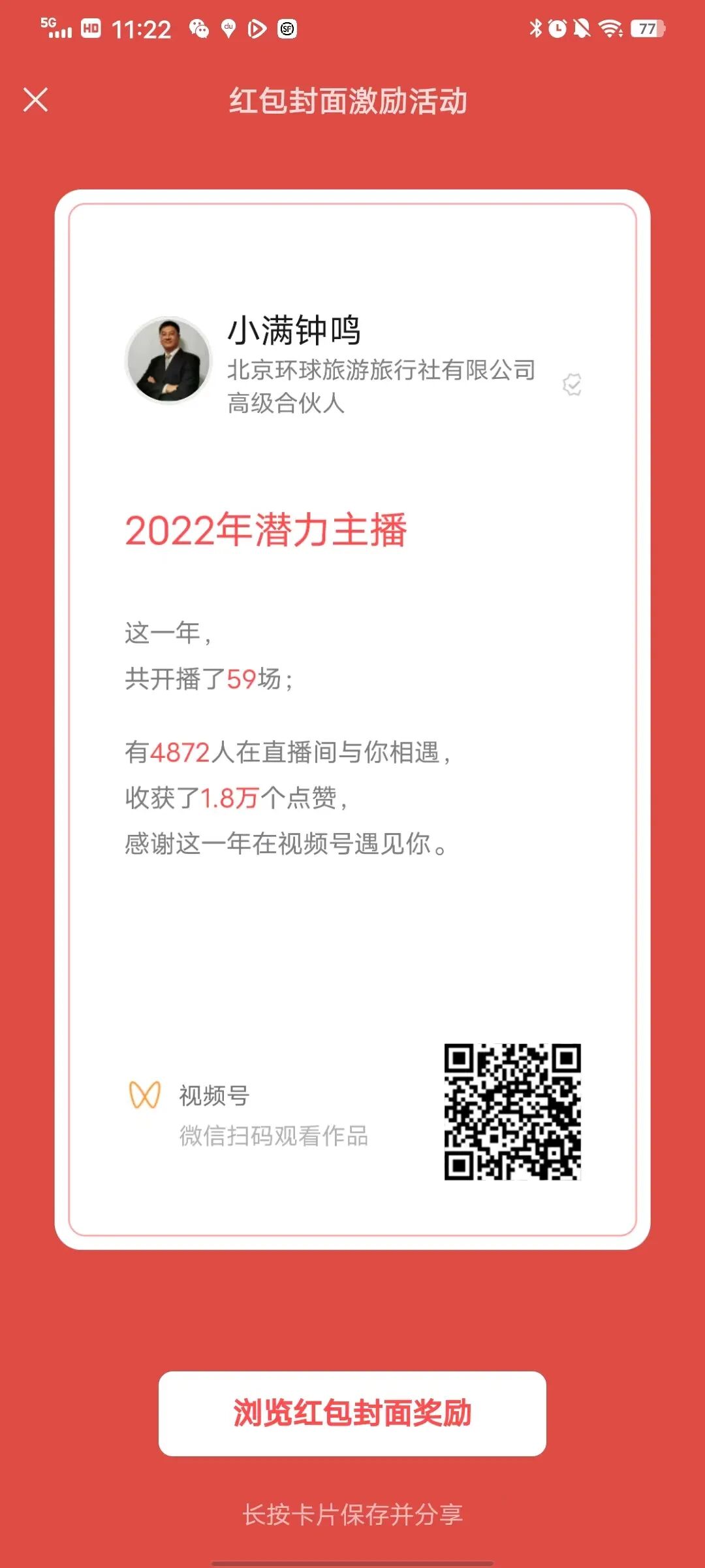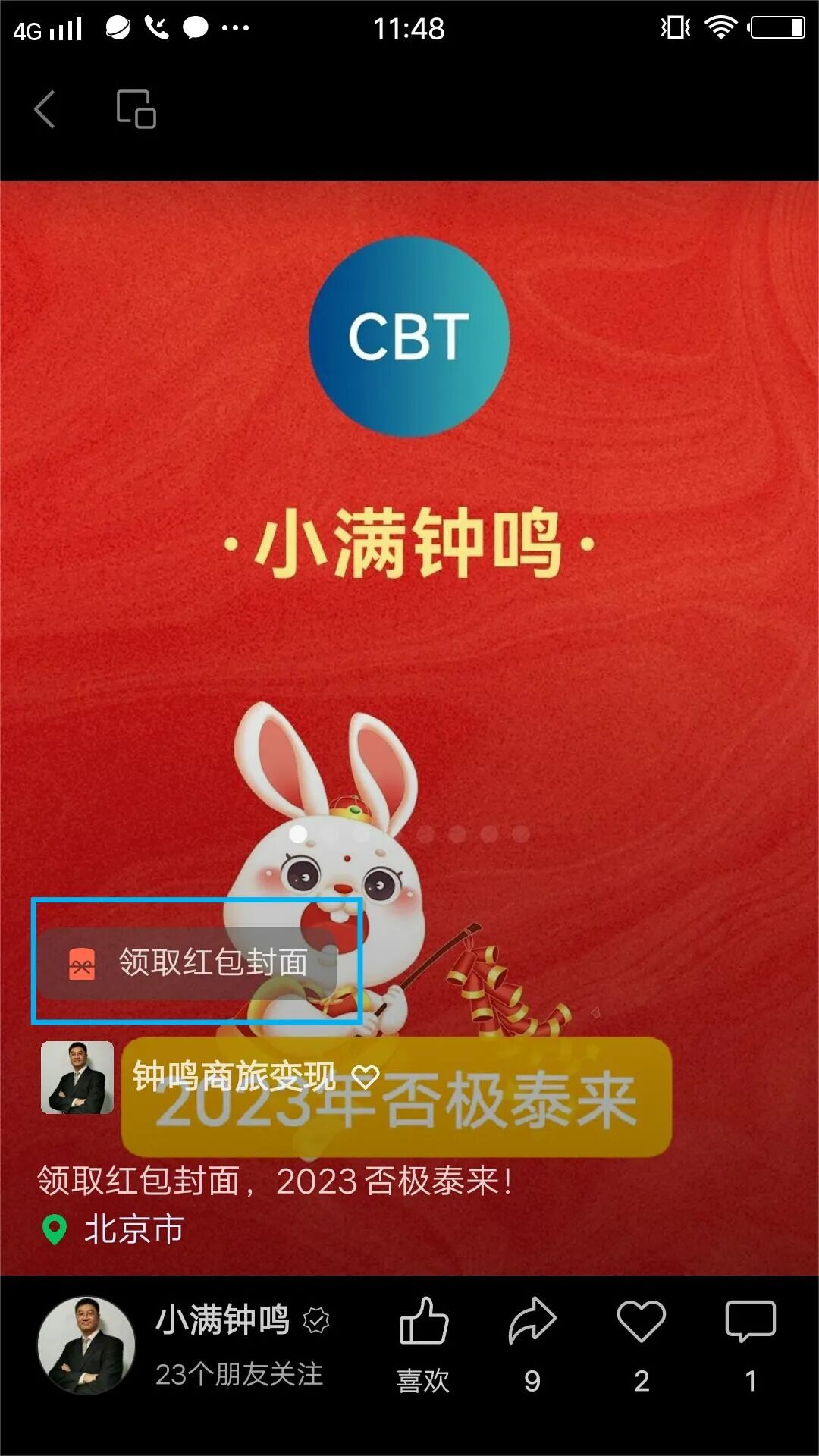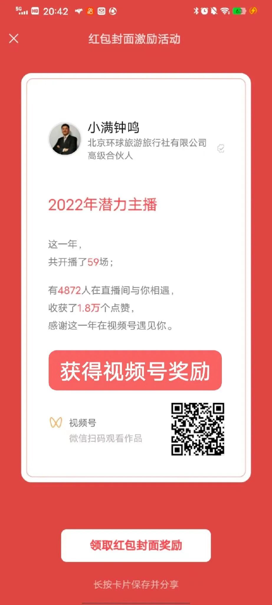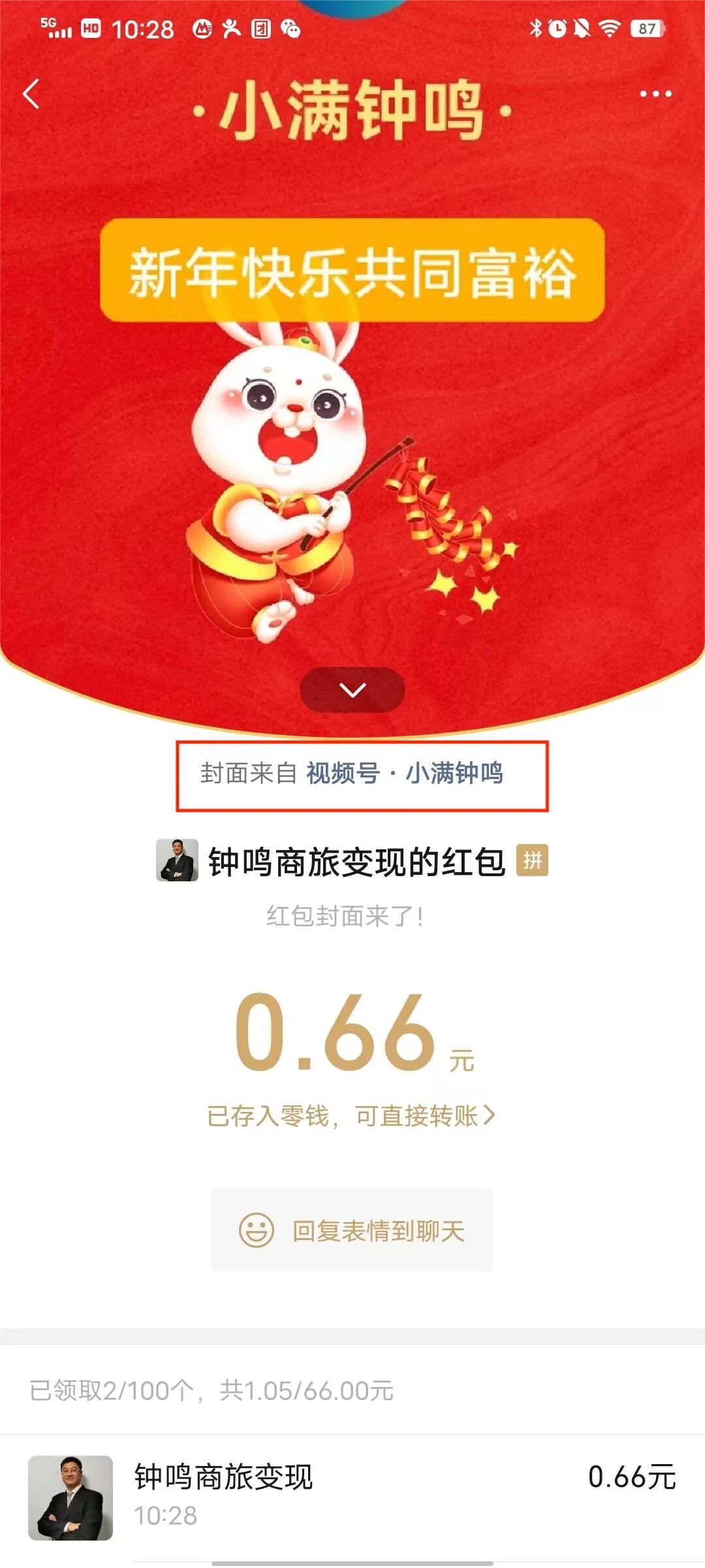 第八步:領取紅包的好友會看到封面來自視頻號:“小滿鐘鳴”,(下圖紅框),點擊后直接跳轉到視頻號,可以增加關注量,預約直播,觀看短視頻,查看公眾號,等于是通過紅包封面進行了微信生態(tài)流量入口的獲取,讓紅包雨來的更猛烈些吧!