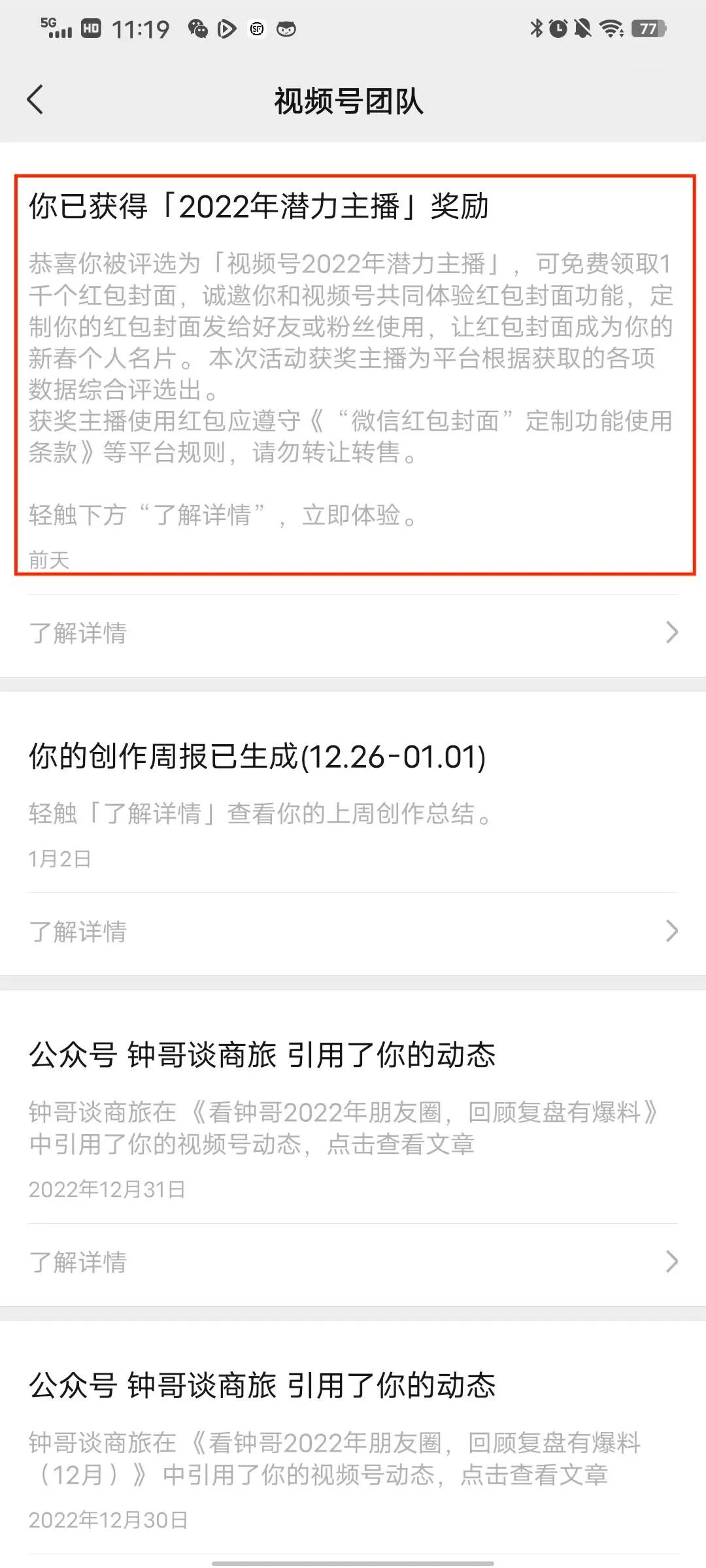 第一步:收到視頻號官方消息,獲得獎勵!(視頻號--視頻號私信--視頻號團隊這里進行查看)