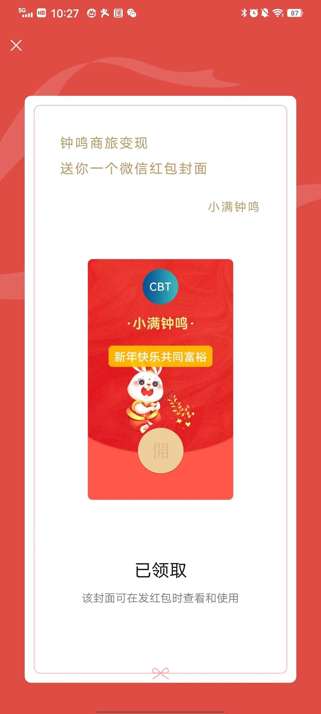 第七步:紅包封面創(chuàng)作者可以用做好的紅包封面進行紅包的發(fā)放了!