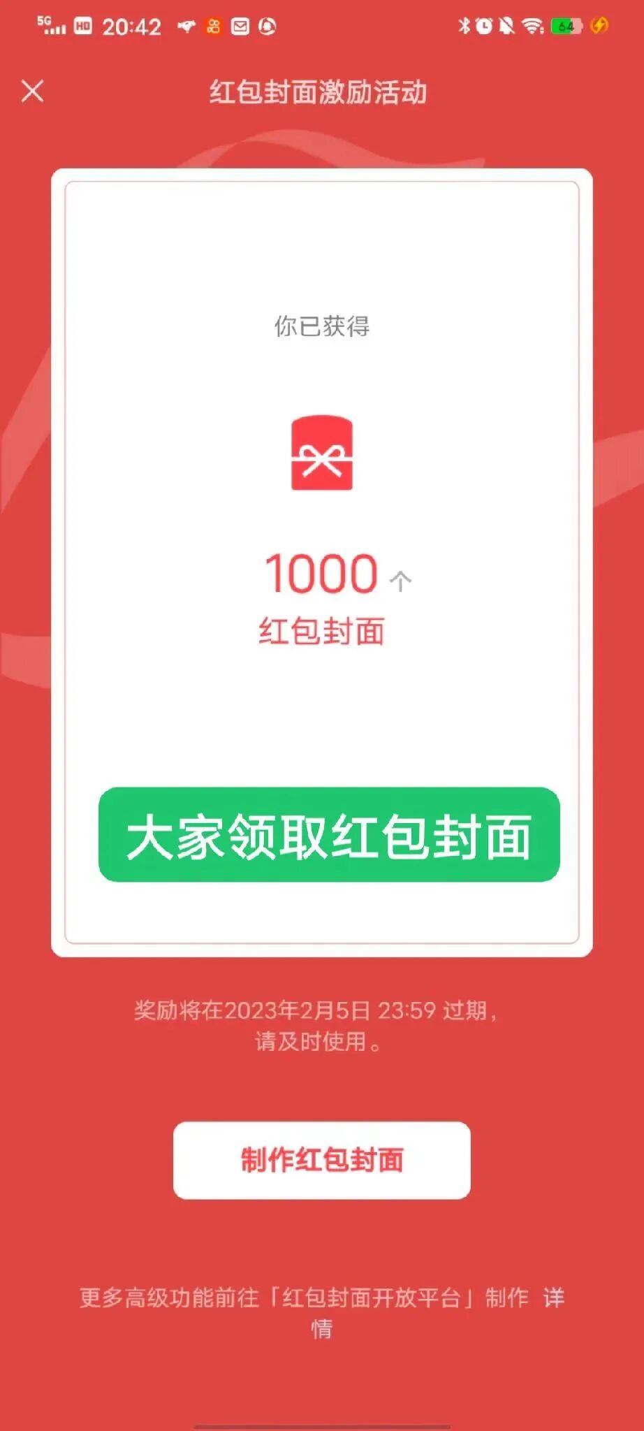 第二步:瀏覽紅包封面獎勵,制作紅包封面